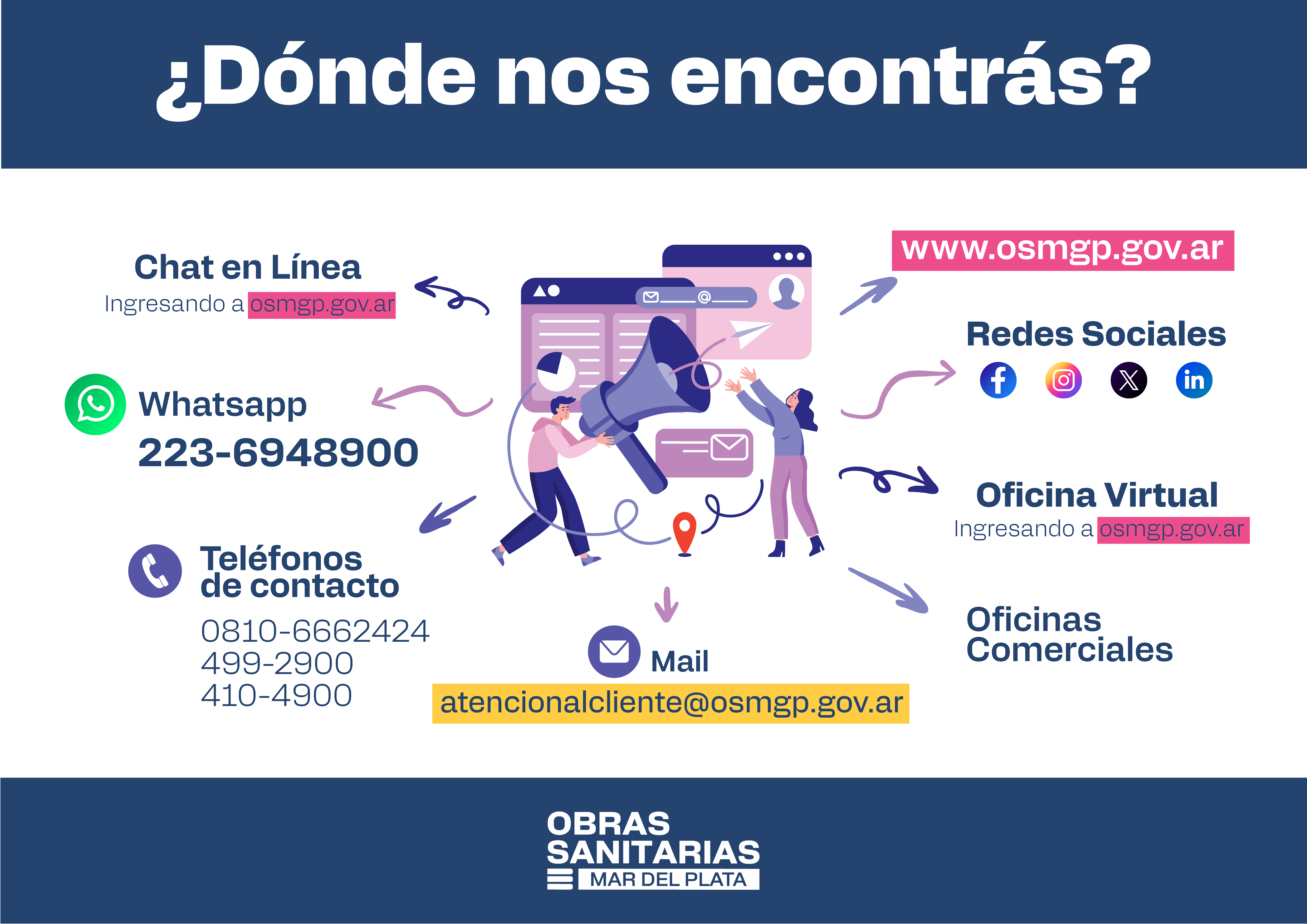 Desde el año 2010, OSSE lleva adelante el Proyecto Educativo “¿Nos lavamos las manos?”, con el objeto de que los alumnos de las escuelas municipales, provinciales y de gestión privada del Partido de General Pueyrredon sean promotores reales al momento de concientizar a la población respecto de la importancia del agua como recurso natural, indispensable para la vida.
